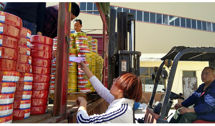 选好电线,安全用电,大批金广丰电线将要发往客户手中,工作人员正在忙碌准备中...